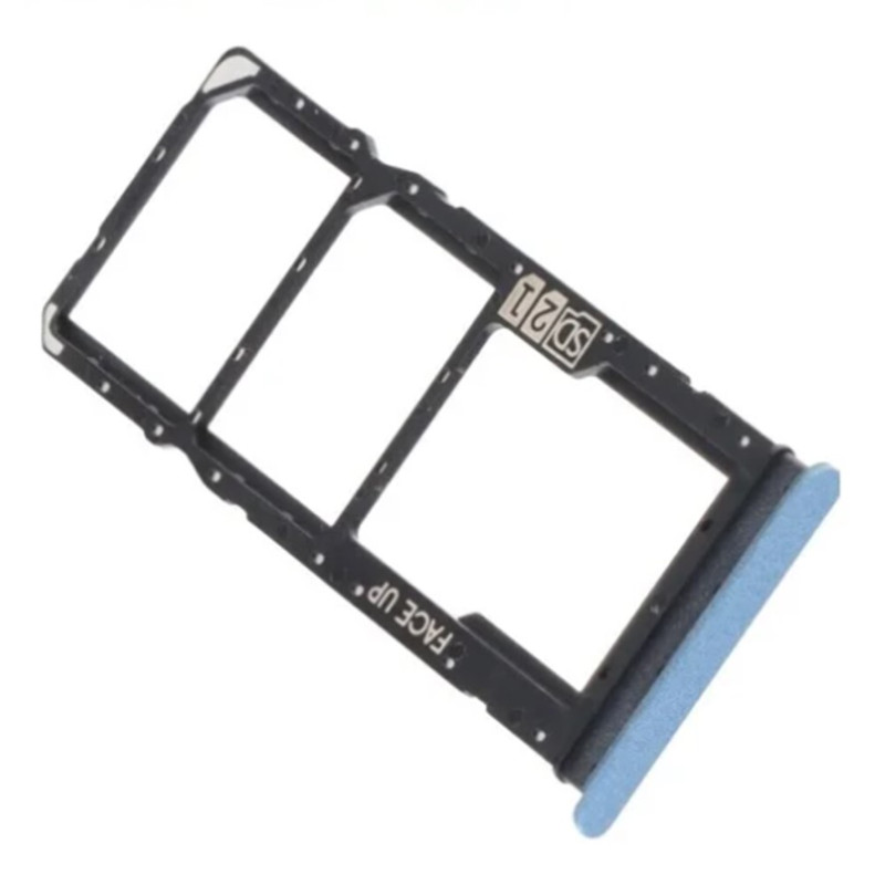 El repuesto sustituye la bandeja lateral donde va alojada la bandeja o bandejas SIM y la tarjeta SD, si el teléfono la tuviese. Color ink blue, azul.