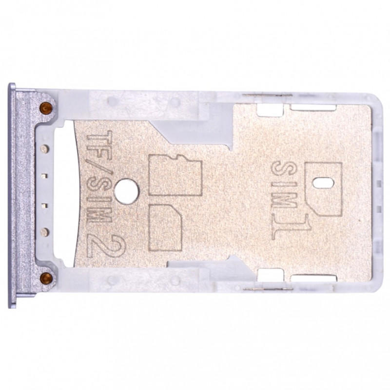El repuesto sustituye la bandeja lateral donde va alojada la bandeja o bandejas SIM y la tarjeta SD, si el teléfono la tuviese. Color plata.