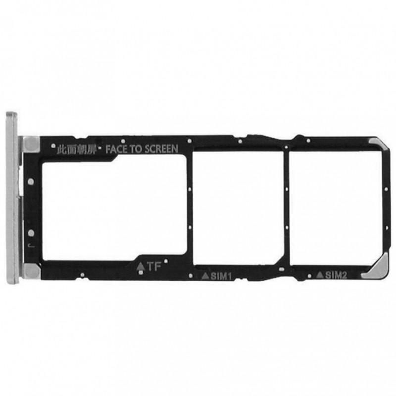 El repuesto sustituye la bandeja lateral donde va alojada la bandeja o bandejas SIM y la tarjeta SD, si el teléfono la tuviese. Color gris.