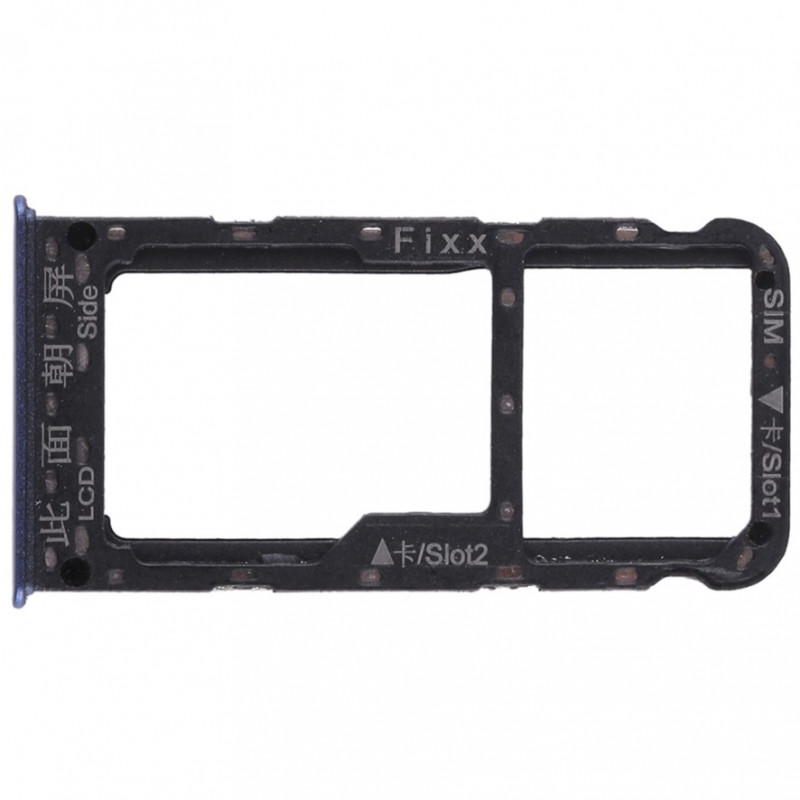 El repuesto sustituye la bandeja lateral donde va alojada la bandeja o bandejas SIM y la tarjeta SD, si el teléfono la tuviese. Color azul.