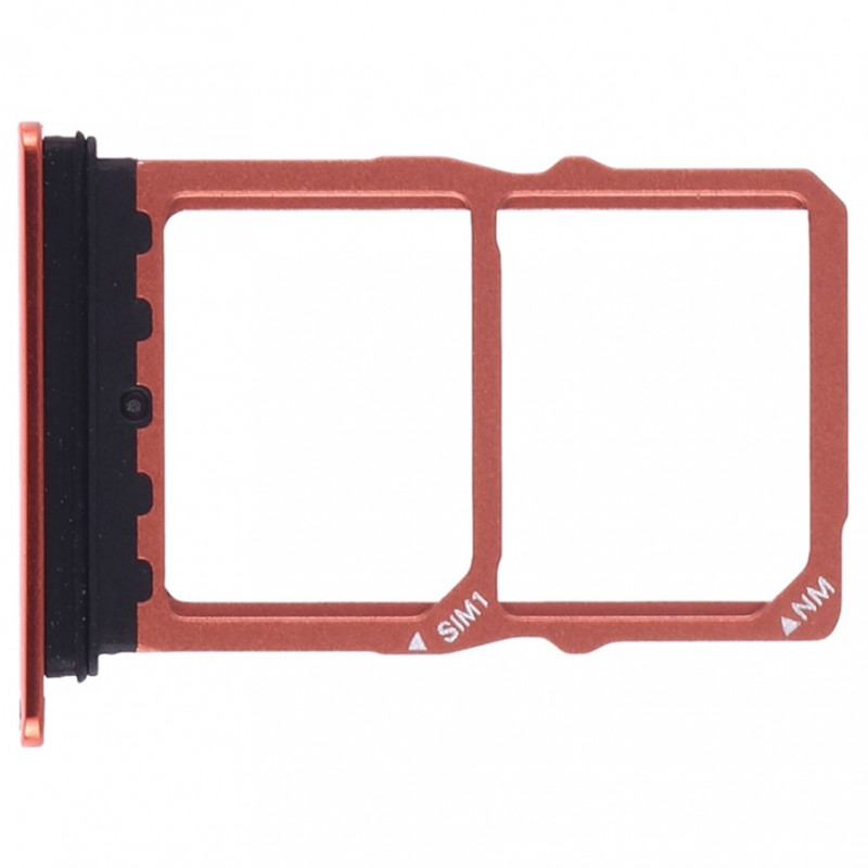 El repuesto sustituye la bandeja lateral donde va alojada la bandeja o bandejas SIM y la tarjeta SD, si el teléfono la tuviese. Color naranja / ambar.