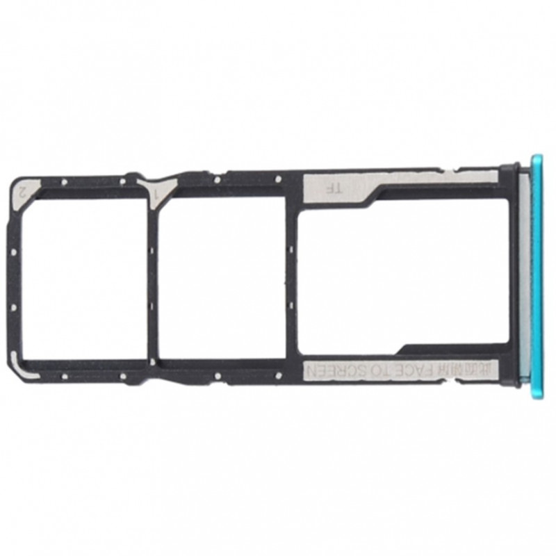 El repuesto sustituye la bandeja lateral donde va alojada la bandeja o bandejas SIM y la tarjeta SD, si el teléfono la tuviese. Color verde.