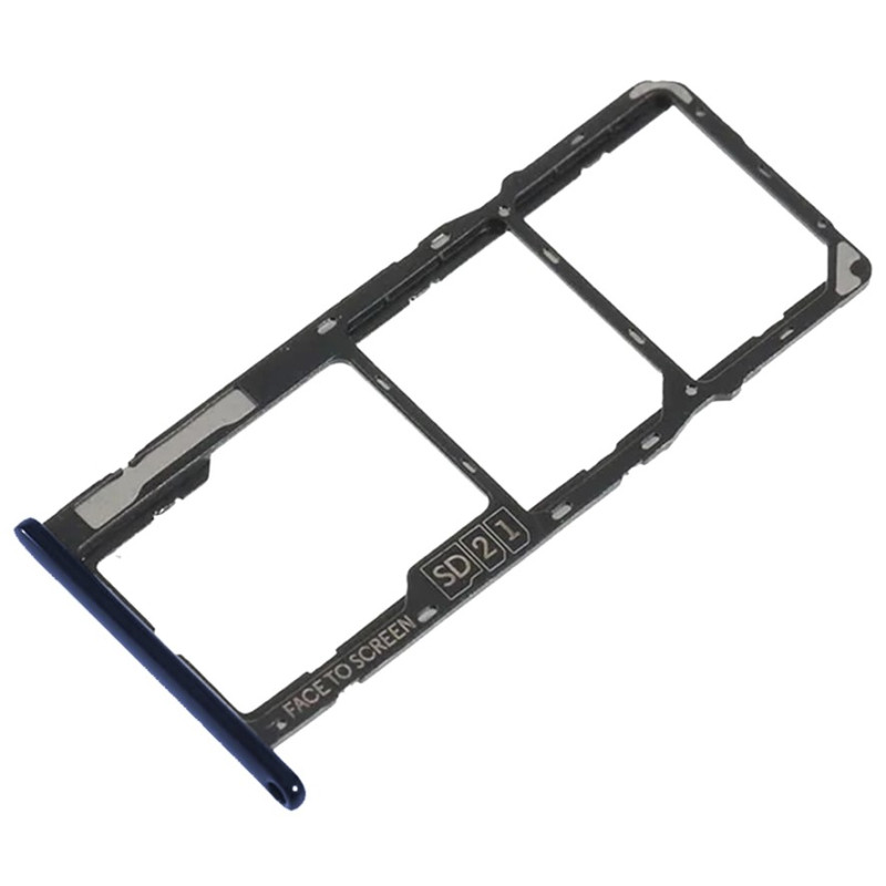 El repuesto sustituye la bandeja lateral donde va alojada la bandeja o bandejas SIM y la tarjeta SD, si el teléfono la tuviese. Color marine blue (azul).