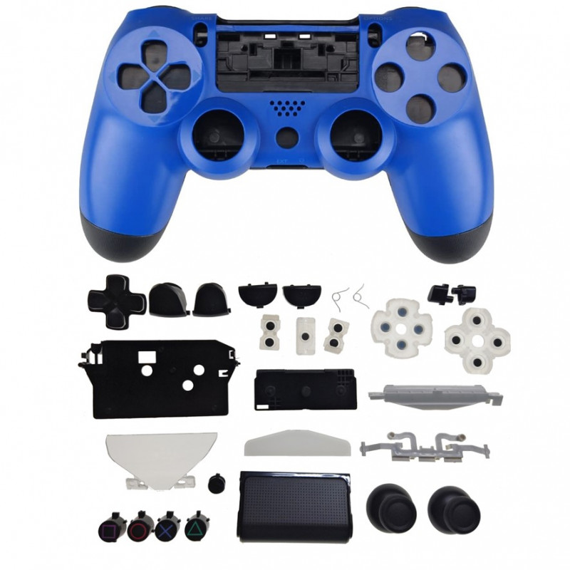 Carcasa completa de repuesto para el mando (Dual Shock 4) de Play Station 4. Incluye todos los botones tal y como se vé en la fotografía. Color azul.